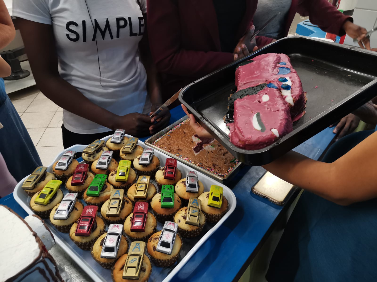 Interesierte Schüler konnten sich aus einem Stück Holz wieder ein Rennauto schnitzen.Unsere Hall wurde mit einer überdimensionalen Rennbahn ausgestattet, auf der gestestet wurde, welches das schnellste Auto ist. Dazu hat einer unserer Lehrer extra ein Zeitmesser programmiert.auch Auto-Kuchen wurden dazu gepacken.Unsere Schüler gewannen dieses Jahr gegen die echt schicken Mitarbeiterautosnoch mehr Auto-Kuchen.