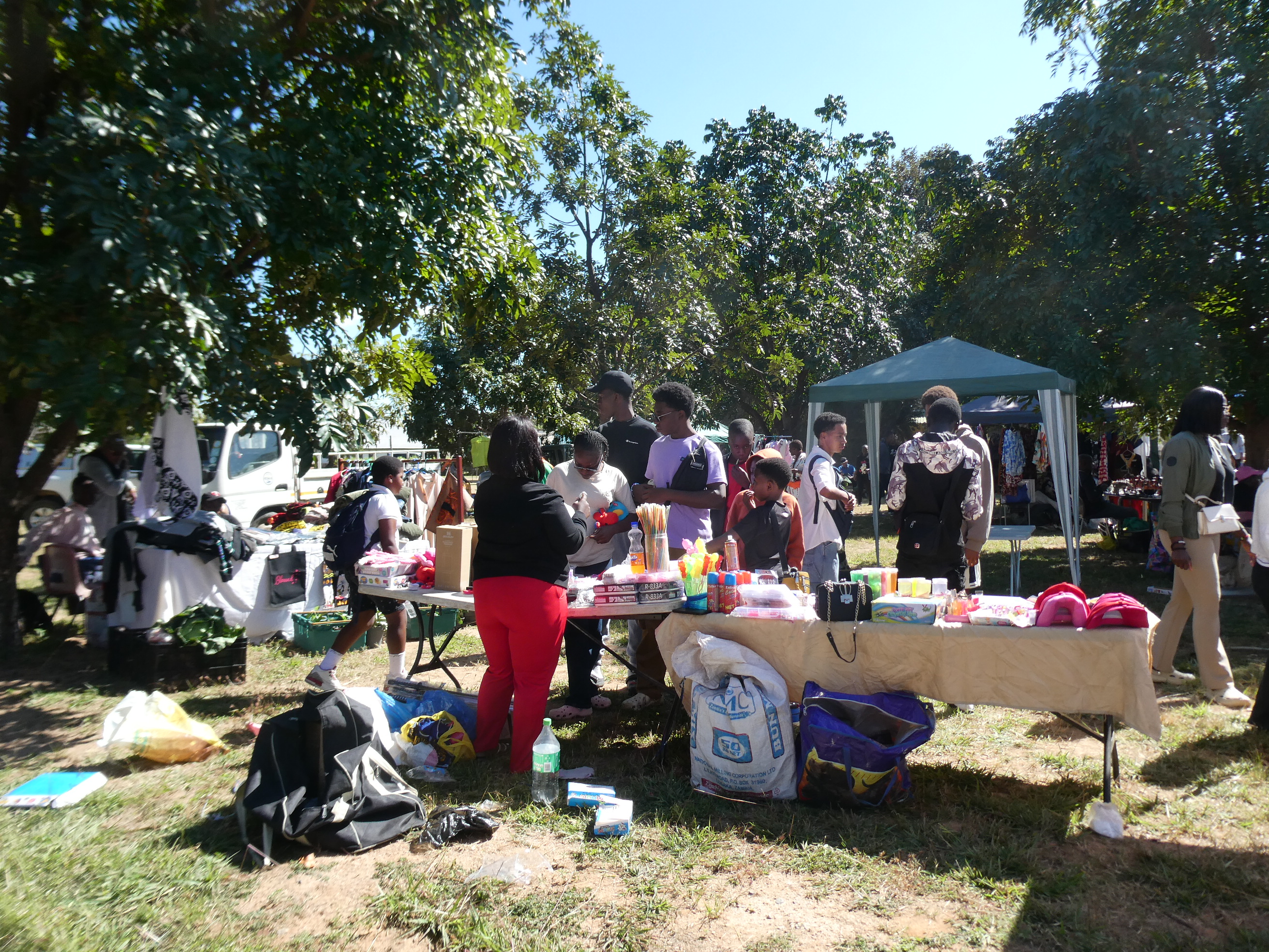 Am Montag war "African Freedom Day", ein Feiertag an dem aber unser größtes Schulfest statt fand. Wir hatten unsere Mayfair. Das ist ein Jahrmarkt, wo verschiedene Anbieter kommen und Kleidung, Schmuck oder andere Dinge verkaufen. Zusätzlich gestaltet jede Klasse einen Stand, dekoriert nach dem Motto des Jahres und mit vielen unterschiedlichen Aktivitäten und Spielen. Darum ist die Mayfair auch vor allem beliebt bei Familien mit kleinen Kindern. Es gibt Hüpfburgen, eine Wasserrutsche, es wird Essen verkauft und alles dient dazu Geld für ein Projekt des Elternbeirates zu sammeln.
