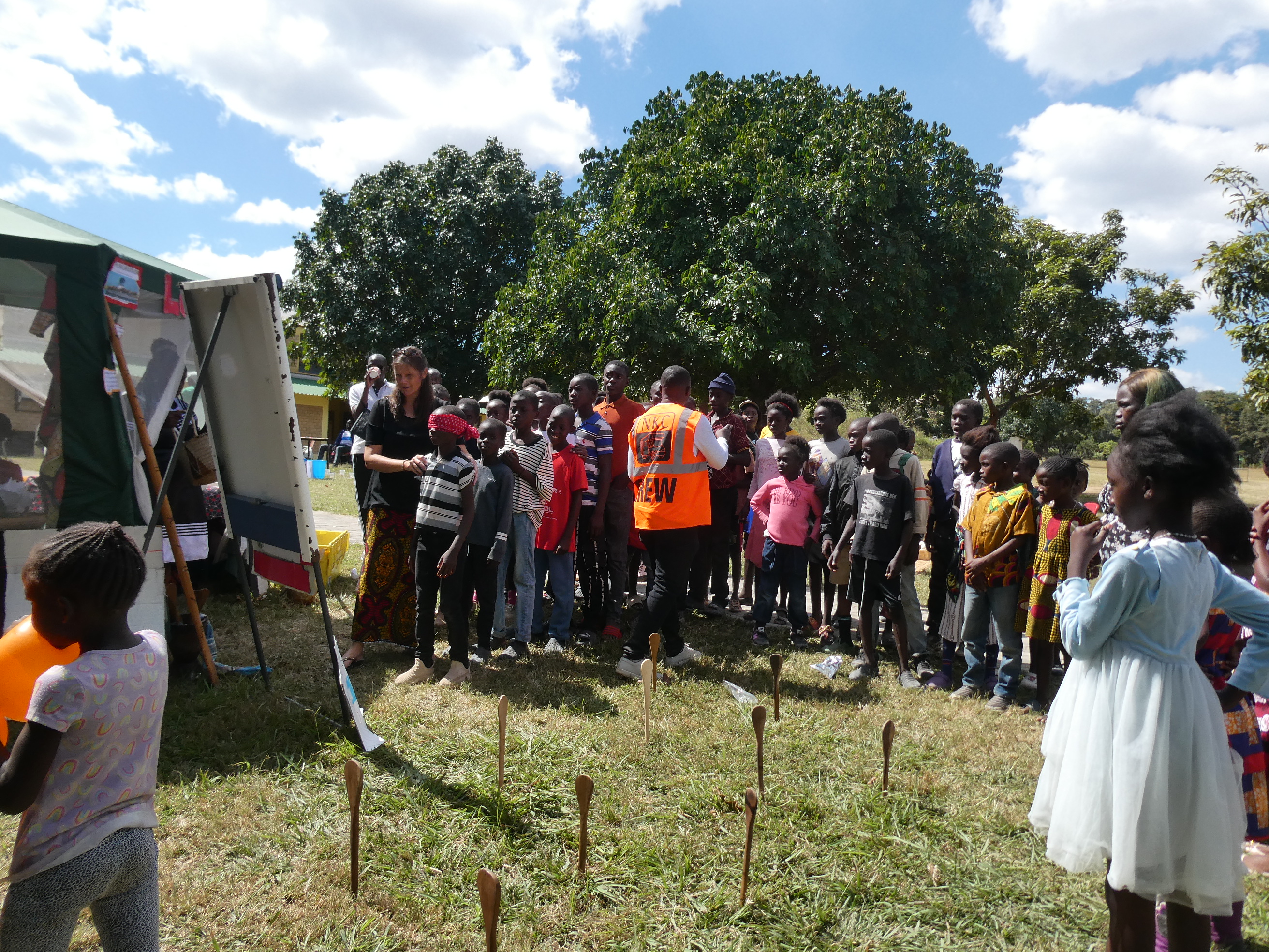 Gott sei Dank ist unser Gelände groß und die Aktivitäten waren viele dass die 50 Communitykinder sich gut unter das Volk mischen konnten. Wir luden alle dazu ein mal auf der Hüpfburg zu hüpfen, etwas was die meisten noch nie zuvor gemacht haben, unser Klassen liesen die Kinder auch mal ein Spiel "umsonst" spielen, so dass die Kinder an so vielen Ständen richtig viel Spaß hatten. Ich lief mit den Kindern herum, ein Amanoarbeiter, der früher unser Übersetzer im Kidsclub war war mit dabei und die Kinder strahlten und freuten sich über all das, was sie ausprobieren konnten.