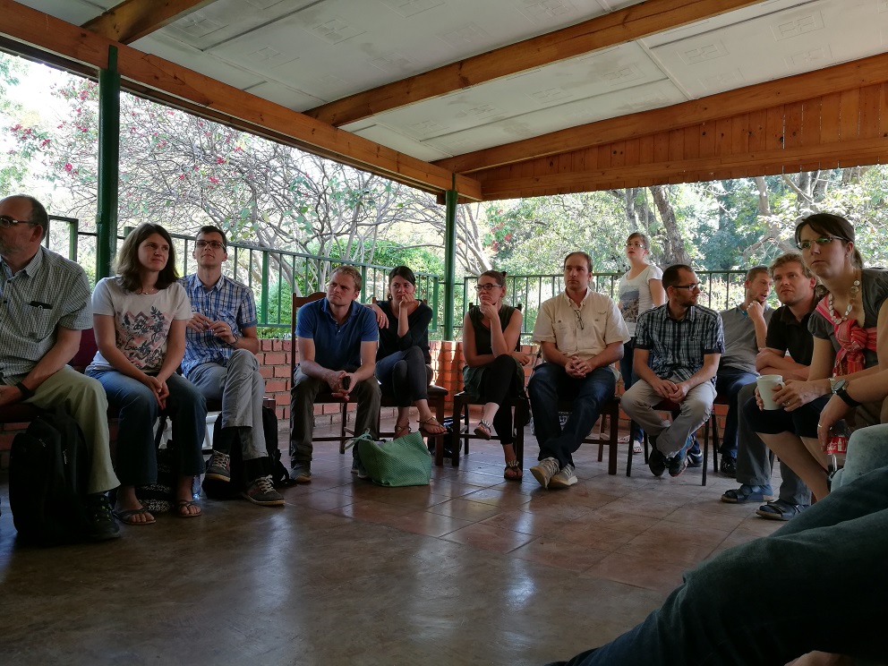 Unsere zweite Woche in Sambia haben wir auf einer Farm in der Nähe von Lusaka verbracht. Dort fand das alle zwei Jahre stattfindende All-Africa Retreat der LM statt. Es trafen sich Missionare aus Sambia, Malawi und Burundi (insgesamt ca. 49 Personen + Kinder) um aufzutanken, sich auszutauschen und sich kennenzulernen. Jeden Tag gab es eine Bibelarbeit von Edgar Luz (Gastreferent aus Liebenzell). Daneben haben wir viel Zeit gehabt zum Austausch oder für Sport und Spiel. Beim fast täglichen Fußballspielen hat Matthias gleich gemerkt, dass einem in 1500 Meter Höhe die Luft (noch) schneller ausgeht! Spass hat es trotzdem gemacht!
