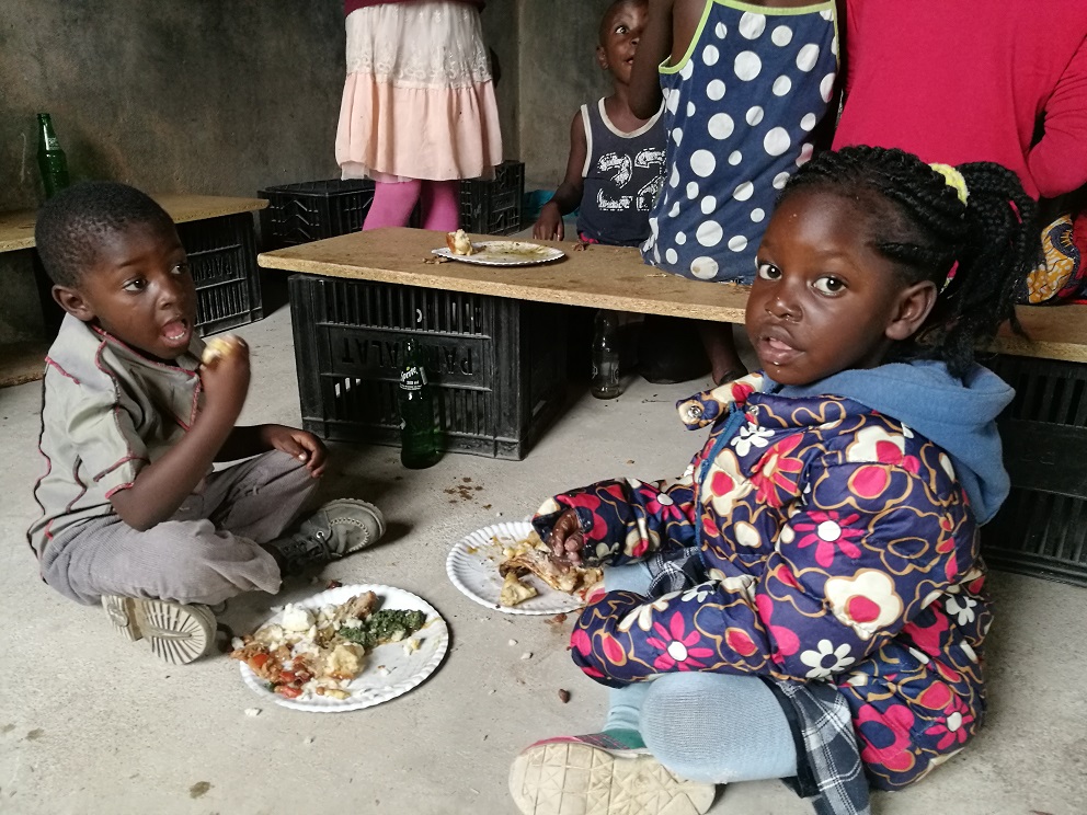 Nun ist Ba Anna leider nach Kitwe gezogen und nicht mehr da. Weil sie seit dem Anfang der Kinderstunde treu mit dabei war, wurde ihr Abschied auch gebührend gefeiert. Es gab viele Spiele und was bei einem sambischen Fest nicht fehlen darf gab es auch noch leckeres Essen das von allen genossen wurde. Besonders war das Spiel 1,2 oder 3 mit Fragen zu Ba Anna.