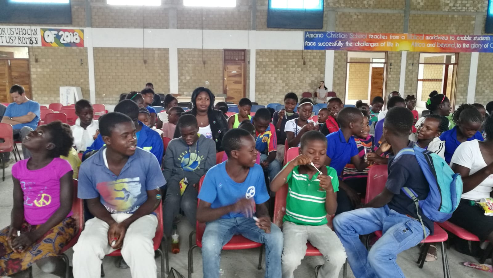 Vorletzes Wochenende, kurz bevor der neue Term in Amano wieder neu gestartet ist, hatten wir in Amano einen besonderen Morgen: Wir hatten ein Kidsclub-Event in der großen Halle. Nicht nur die Kinder von unserem normalen Kidsclub kamen dazu, sondern auch noch ein zweiter Kidsclub, der normalerweise im Nachbar-Dorf Kasompe statt findet. Diesen Kidsclub macht ein junger Mann, der selbst mal Teilnehmer im Kidsclub war. Er hat nun ein Herz für die Kinder in seiner Umgebung und macht regelmäßig den Kidsclub in Kasompe.
