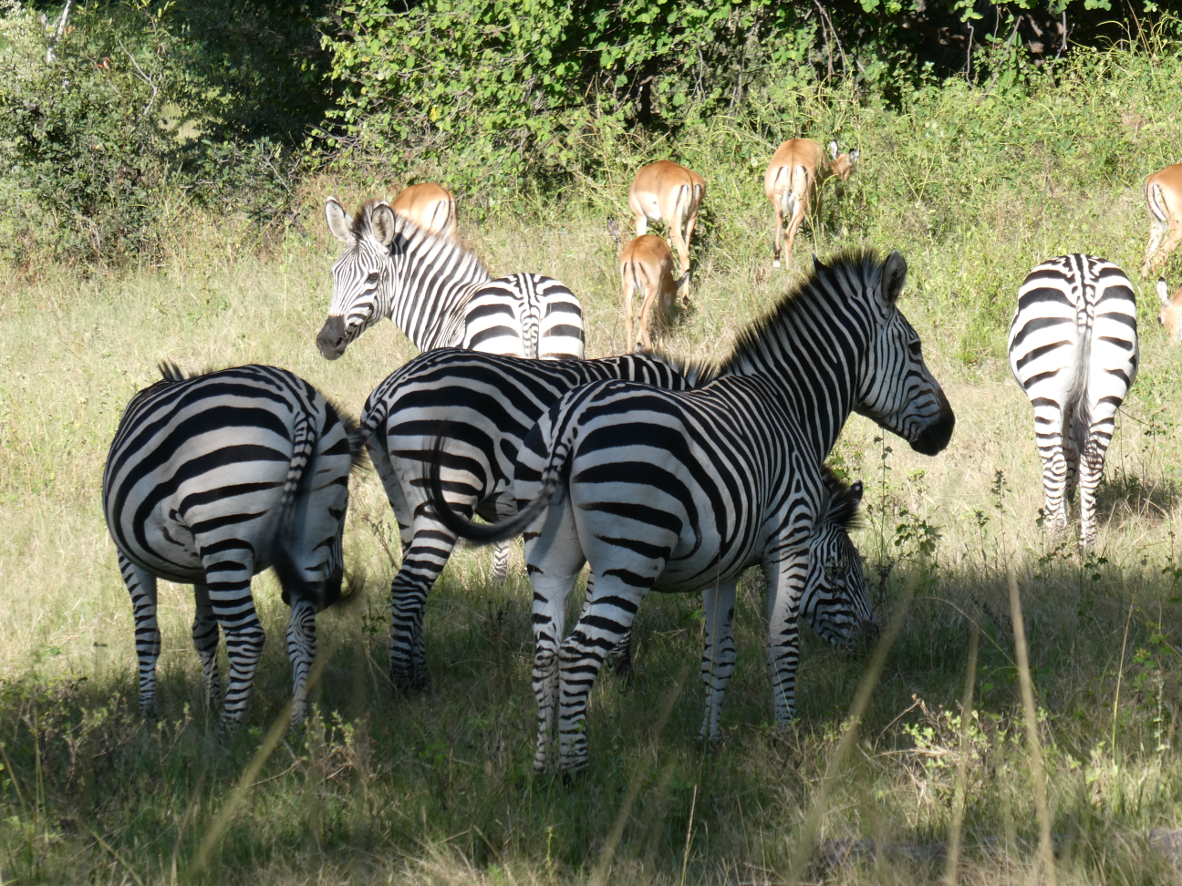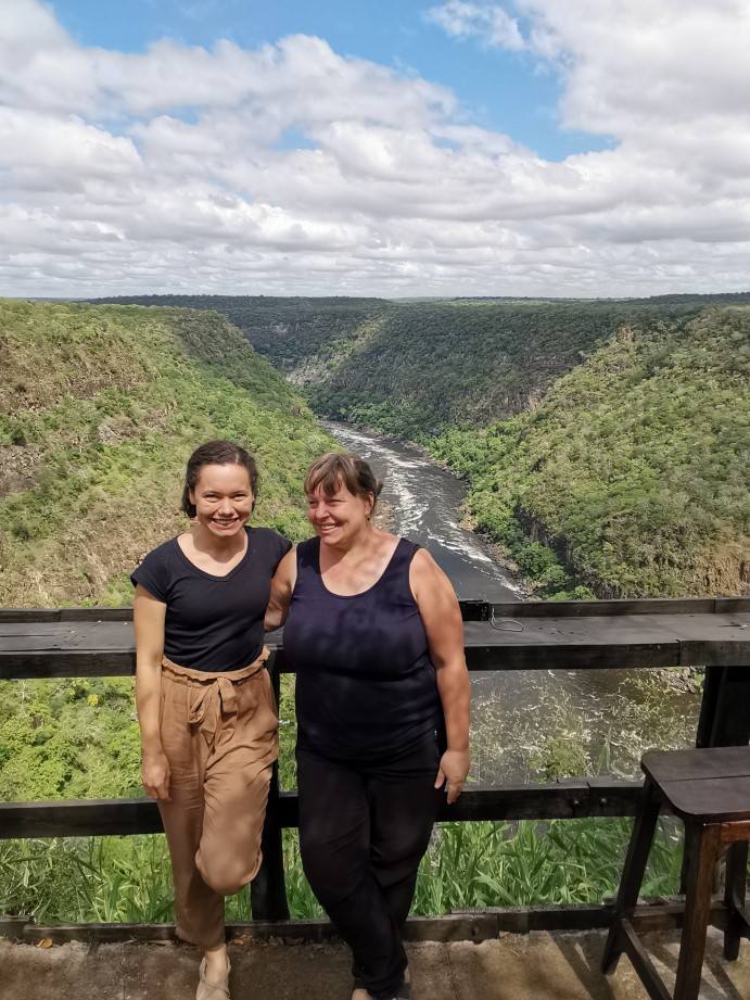 In Livingstone durften wir (obwohl wir nur Camper waren) die nahe Hotelterasse mit Blick auf den Zambesi Fluss benutzen und hatten so immer wieder wunderschöne Sonnenuntergänge oder unsere Stille Zeit am Morgen mit Hippo-Grunzen und Krokodilbegegnungen!