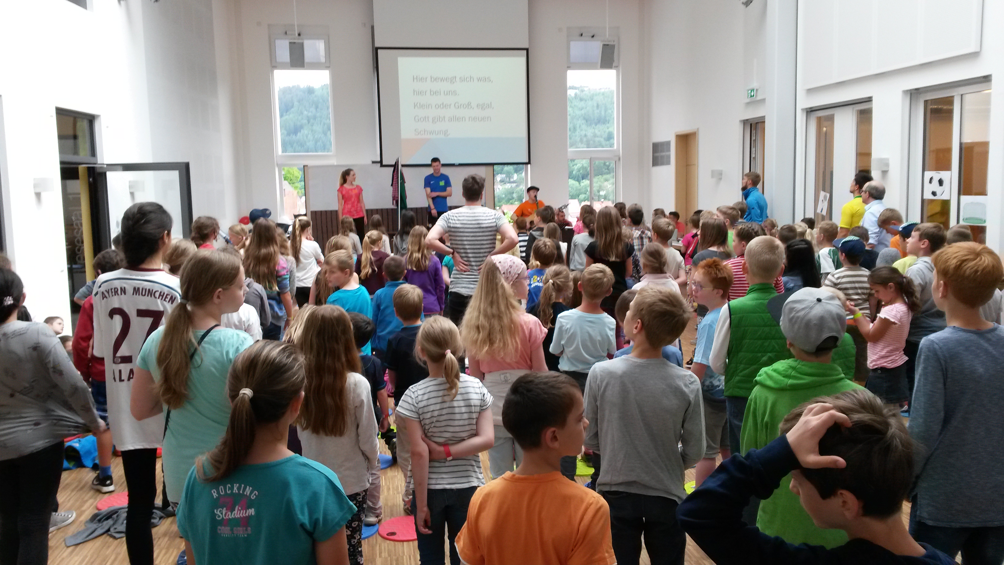 Morgens waren wir beim Kinderprogramm dabei und hatten die Möglichkeit von unserer Zeit in Kanada zu berichten und Spiele mit den Kindern zu machen. Wir hatten ca. 100 Kinder ab der 4. Klasse. Es hat riesen Spaß gemacht, mit ihnen einen filipinischen Line-Dance einzuüben und das Heuschreckenspucken auszuprobieren (natürlich nur mit Haribo-Fröschen).