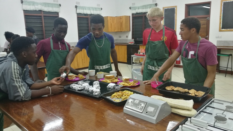 Die Mädels kochten ein indisches Hühner-Curry. Die Jungs machten es sich richtig schwer und bereiteten einen Chicken-Burger zu mit selbstgemachten Pommes, Soßen und Salat.
