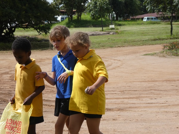 Allerdings war dieses Mal der Wettkampf in drei verschiedenen Alterskategorien festgelegt. So machten die Großen (Klasse 8-12) einen Orientierungslauf im Busch. Dort hat auch Matze mitgemacht. Mit einer Gruppe mussten sie verschiedene Orientierungspunkte finden. Das war ganz schön matschig, anstrenged aber auch spaßig. Ein paar Schüler verloren sogar ihre Schuhe in einem Matschloch.