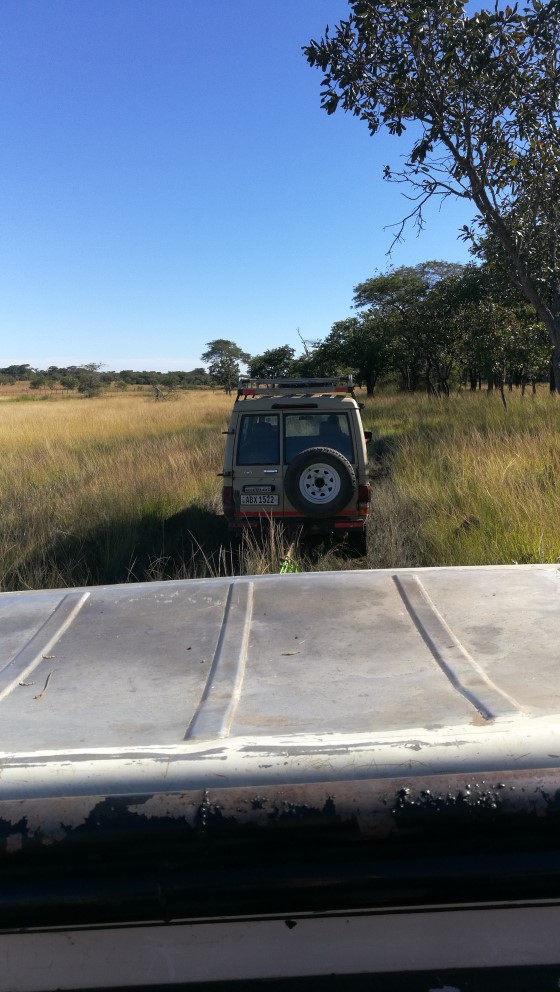 Im Termbreak war Katja mit drei Freunden für ein Wochenende Campen. Darum fuhr sie die meiste Zeit auch den großen Landcruiser, der sich übrigens fährt wie ein Traktor. Als sie an einem Nachmittag im Bush herumfuhren um Giraffen zu finden passierte etwas, das mit Matthias nie passiert wäre. Wir blieben stecken!