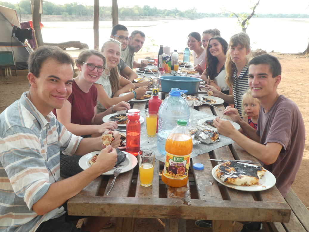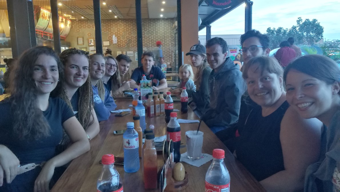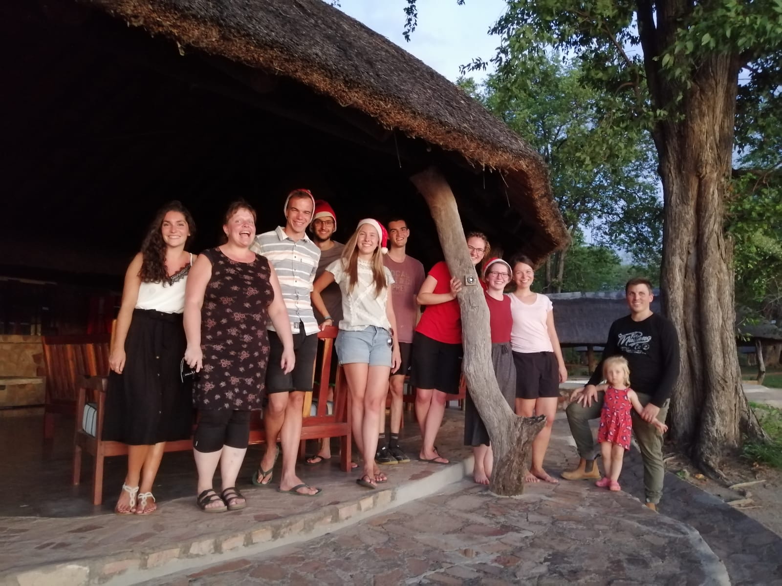 Aussicht über den Luangwa Fluss - direkt an unserem Essplatz. Aussicht auf unseren Urlaub!Auf den 2-tägigen Fahrten wurde jeder Platz ausgenutzt, mit zwei Fahrzeugen und einem Anhänger waren die Autos fast bis auf den letzten Platz besetzt.Unsere Zwischenstopps waren in der Hauptstadt Lusaka. Für uns die Möglichkeit Essen zu gehen, bevor wir uns im "Bush" selbst versorgen.Unterwegs in kleineren Teams im NationalparkSo tolle Photos kann man mit dem Handy machen, weil die Elefanten sich nicht so leicht gestört fühlen von einem Auto.Impalaskleine SafaritruppeAuch dieses Mal durften wir wieder ein Rudel Wildhunde entdecken - ein Rudel von 15 Tieren.Giraffen sind einfach so elegant.Eine Familie von diesen Tieren haben direkt bei unserem Campingplatz gewohnt und waren Abends immer wieder unterwegs.Löwen sind halt faulEin PukuSolche riesigen Elefantenbullen können schon etwas furchteinflößend sein.Ein Vogelhighlight für MatzeHippos kommen bei Dämmerung aus dem Wasser um zu grasen.Abendsafari.Der gute alte Landcruicer.Für manch einer sieht es aus wie ein ganz normaler Hund, aber ich mag sie einfach - die Wildhunde.Ein Gnu.Unser "Schmankerl" am letzten Tag im Park - ein Leopard.Eine Elefantenfamilie nach LuangwaüberquerungZebras machen es sich im Schatten bequem.Neben Safaris wurde auch viel gespielt - das absolute Lieblingsspiel dieses Jahr ist "Bang".Es gab viel Zeit für GesprächeManchmal war das Pool so schön - aber eine Zeitlang sah es auch ziemlich grün aus.Alle Voluntäre die mit dabei waren!Zwei Mal morgens nach dem Aufwachen war so ein Skorpion in -!!!- meinem Moskitonetz ganz oben. Neben Skorpionen haben wir auch Schlangen gesehen.Lagerfeuerromantik.So schön das Septs, die schon mit uns in Toronto waren zusammen mit uns Urlaub machen konnten.Weihnachtsessen: Calzone aus dem Lagerfeuer.Besondere Anlässe bekommen auch besonderes Essen.Sonnenuntergang vom Camp.Am Heiligen Abend mit Wichteln, Singen, Andacht und einem Weihnachtsphoto.Baden Nachts um 22 Uhr - nach unserer Weihnachtsfeier.