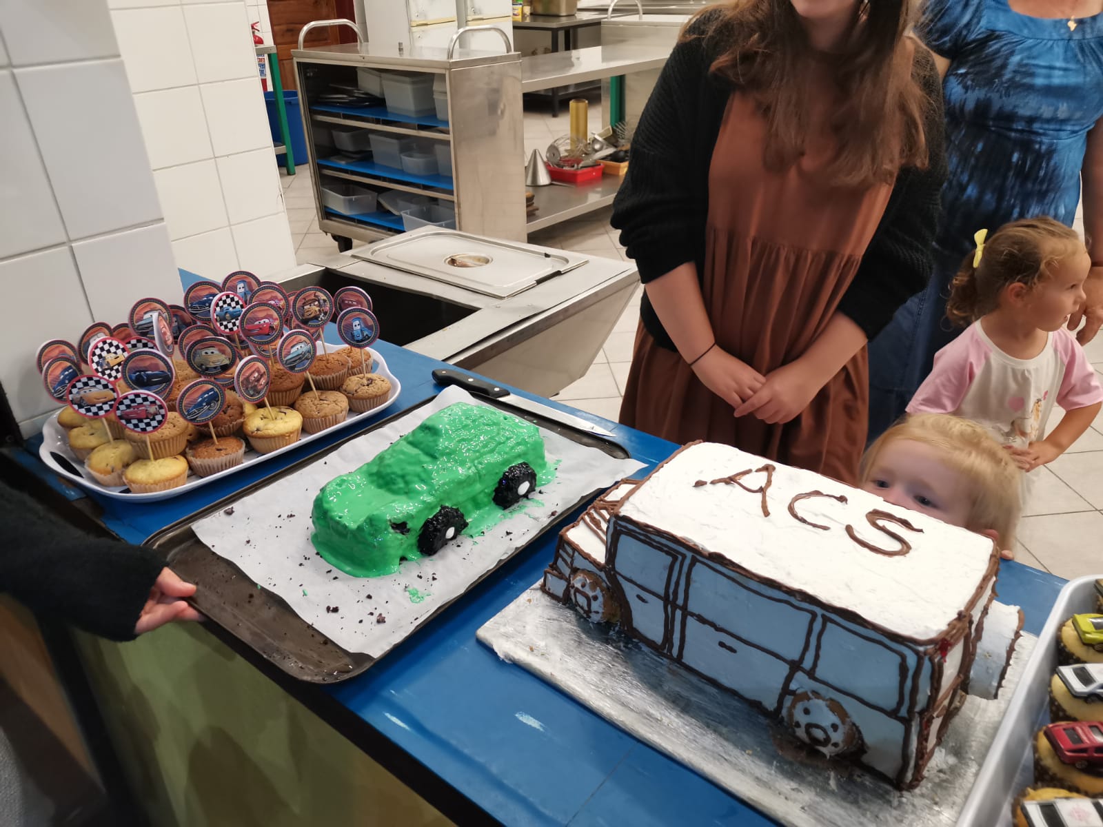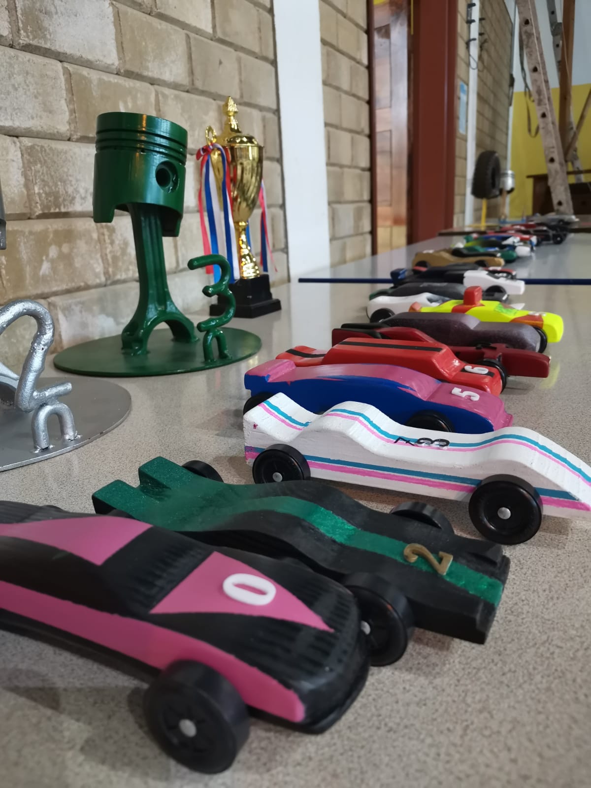 Interesierte Schüler konnten sich aus einem Stück Holz wieder ein Rennauto schnitzen.Unsere Hall wurde mit einer überdimensionalen Rennbahn ausgestattet, auf der gestestet wurde, welches das schnellste Auto ist. Dazu hat einer unserer Lehrer extra ein Zeitmesser programmiert.auch Auto-Kuchen wurden dazu gepacken.Unsere Schüler gewannen dieses Jahr gegen die echt schicken Mitarbeiterautosnoch mehr Auto-Kuchen.