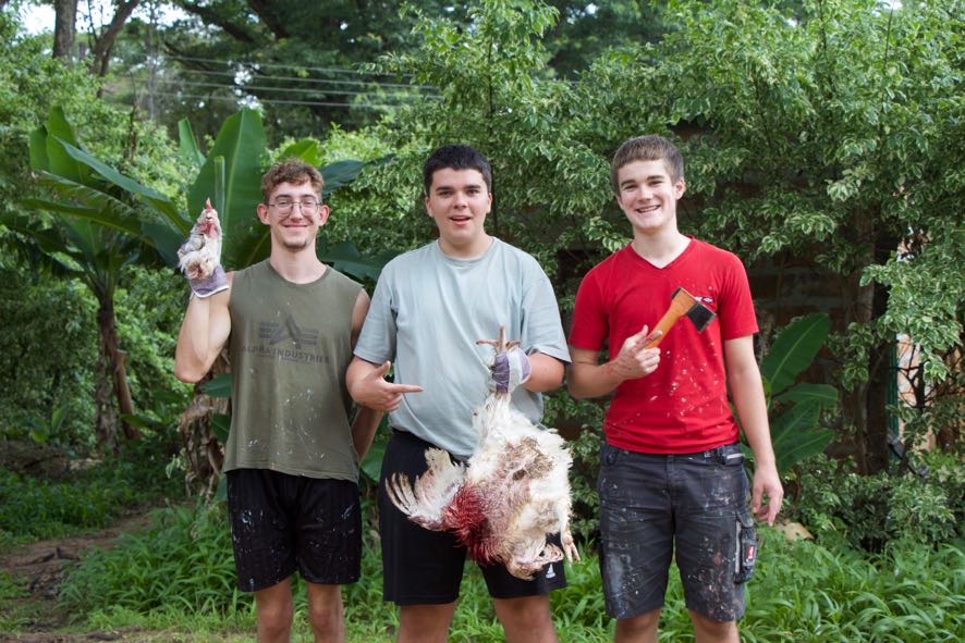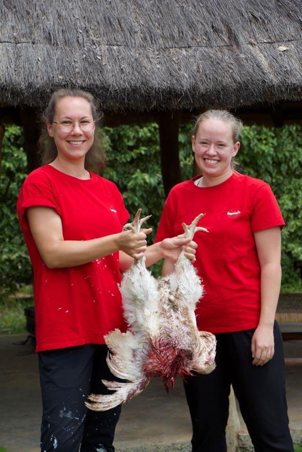 Unsere drei Jungs-Voluntäre haben sich in den Weihnachtsferien ein neues Projekt überlegt und den Hühnerstall in ihrem Garten repariert. Seit einigen Wochen haben sie sich ein paar Masthühner zugelegt und die wurden jetzt geschlachtet. Ein großes Ereignis für unsere Voluntäre, die sich jetzt auf ein paar Kilo Extrafleisch freuen dürfen. Ihr nächstes Projekt sind Legehennen, damit sie frische Eier bekommen.