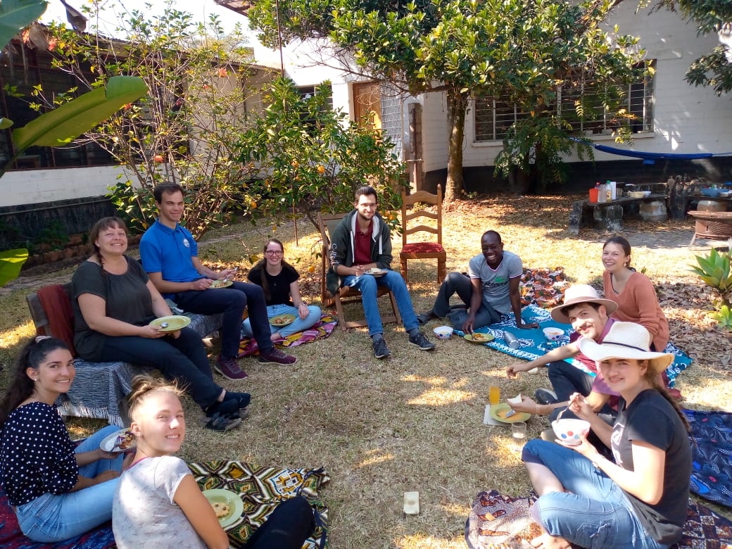 Für uns eine große Chance, denn so bekommt er auch mit, wie wir leben, nachdem wir ja auch schon Gast in seinem Dorf sein durften. Er hat so gut mit den Amanobewohnern connected und ist wirklich ein ruhiger, eifrig studierender und hilfsbereiter Gast. Einen Sonntag hat er mit den Voluntären zusammen Nshima gekocht und gerne bei sportlichen Aktionen aller Art mitgemacht.