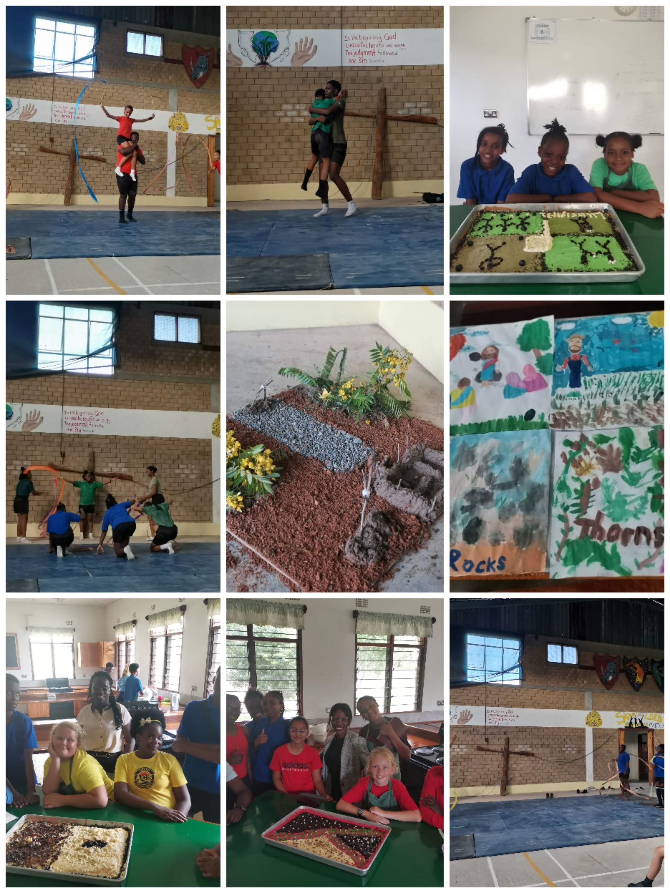 Alle zwei Jahre tritt die ganze Schule auch in verschiedenen kreativen Disziplinen gegeneinander an. So gab es gemischte Teams zwischen Grund- und Hauptschülern und wir hatten einen Nachmittag ein kunterbuntes, kreatives Miteinander, wo so manche Gaben der Schüler zum Vorschein kamen. Es wurden Bändertänze choreographiert, Anspiele eingeübt, Kreidekunst-Streetart gemalt, Kuchen dekoriert, Bilder aus Landschaftsmaterialien gestaltet, mit Knet eine Photostory gemacht und auch mit Wasserfarben einer Bildersequenz kreiert.