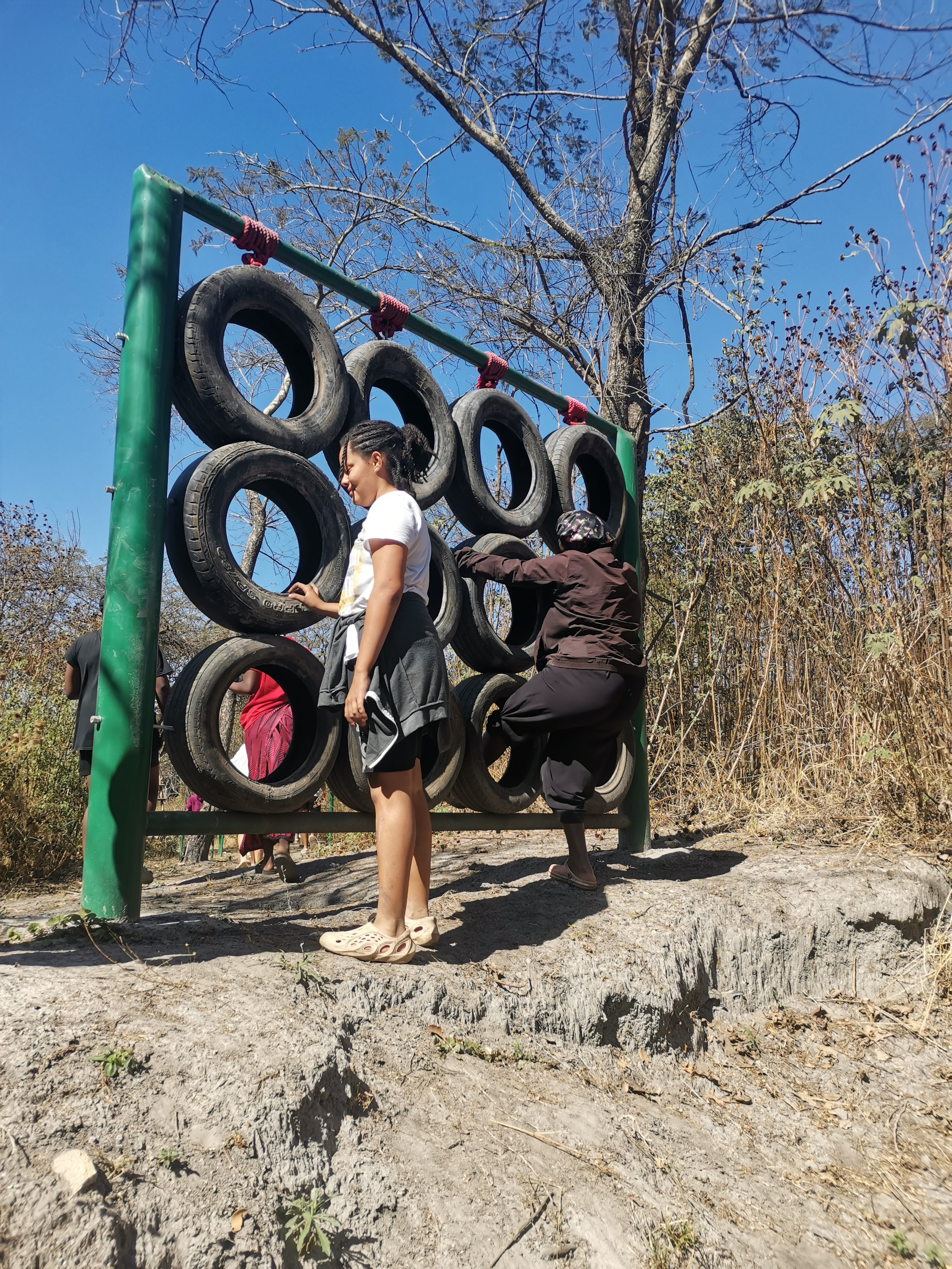 Der Besitzer hatte vor kurzem ein Mudd-Run (also ein Schlamm-Rennen) veranstaltet und auf dem ganzen Gelände gab es immer wieder verschiedene Hindernisse, die man ausprobieren konnte. Erst haben die Mädels nur skeptisch geschaut, aber irgendwann wurde das Eis gebrochen und die ganzen Mädels fingen an ihr können unter beweis zu stellen, und spielerisch einige der Hindernisse auszuprobieren.