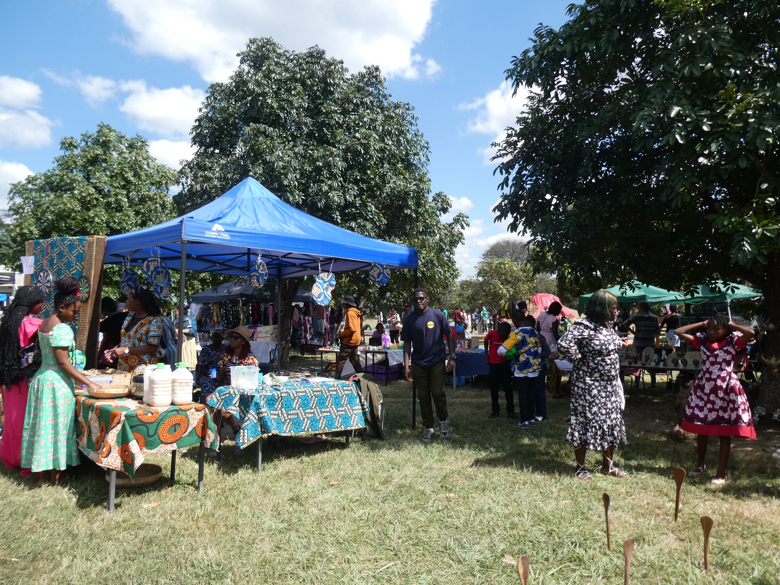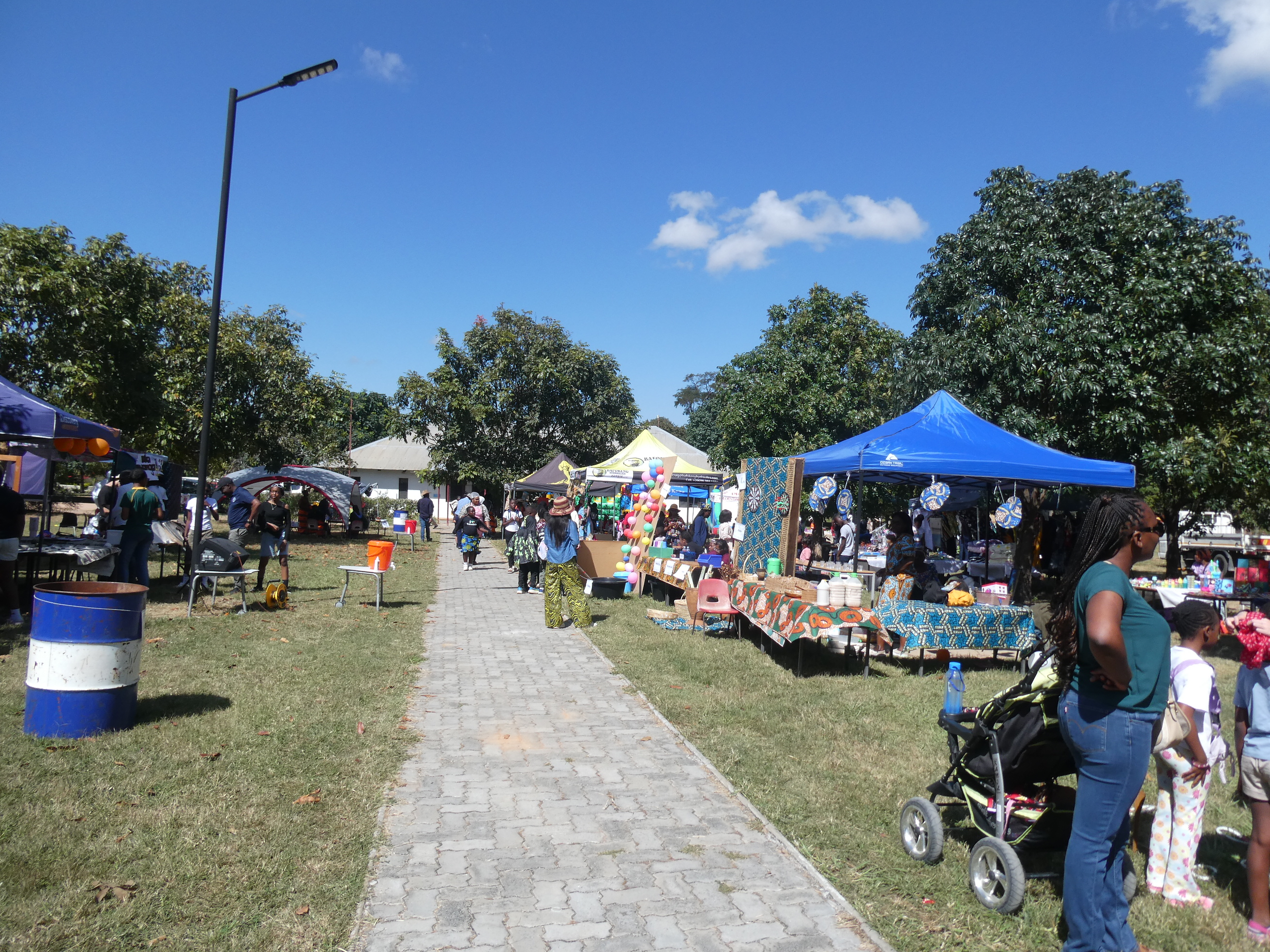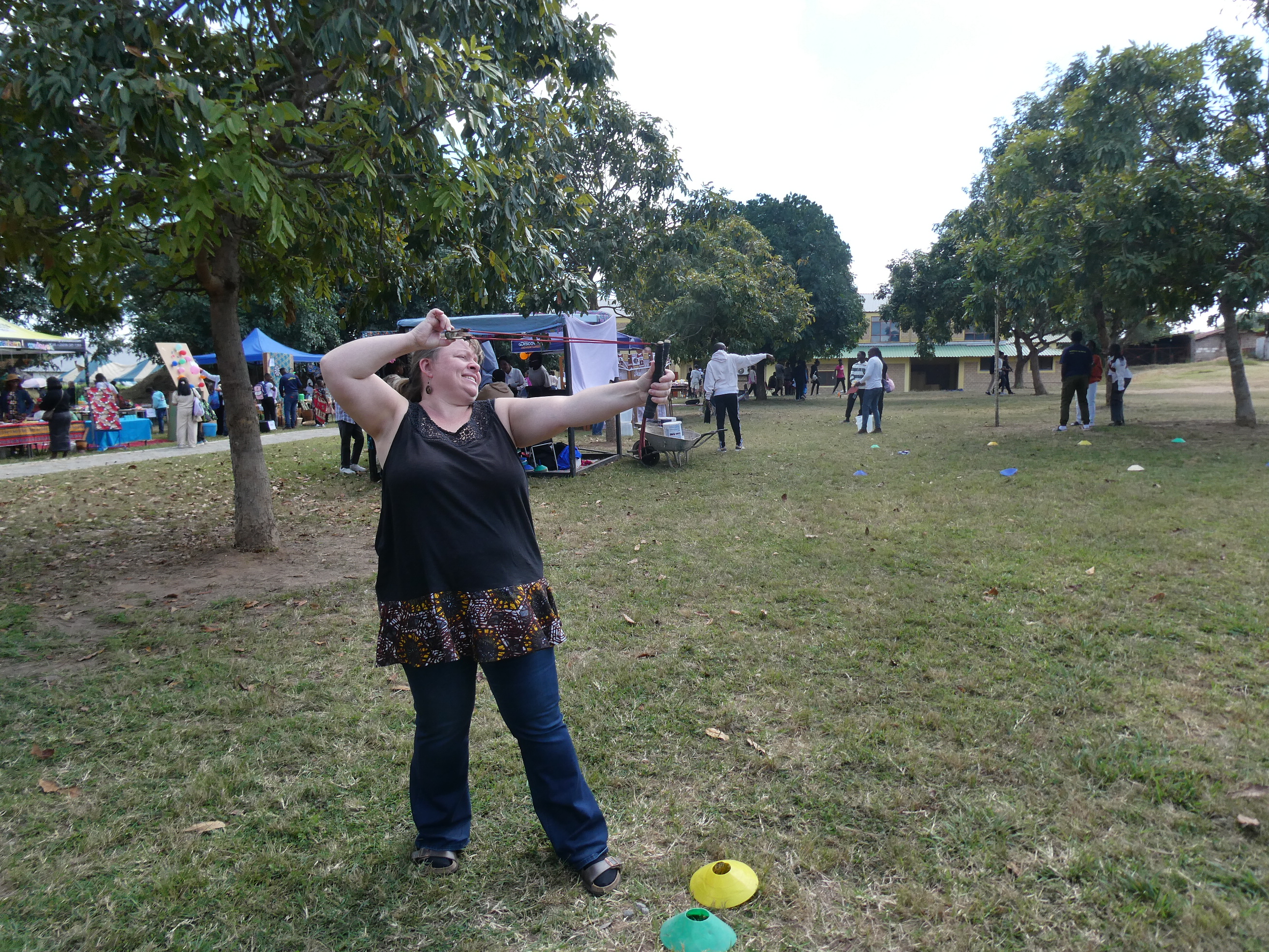 Am Montag war "African Freedom Day", ein Feiertag an dem aber unser größtes Schulfest statt fand. Wir hatten unsere Mayfair. Das ist ein Jahrmarkt, wo verschiedene Anbieter kommen und Kleidung, Schmuck oder andere Dinge verkaufen. Zusätzlich gestaltet jede Klasse einen Stand, dekoriert nach dem Motto des Jahres und mit vielen unterschiedlichen Aktivitäten und Spielen. Darum ist die Mayfair auch vor allem beliebt bei Familien mit kleinen Kindern. Es gibt Hüpfburgen, eine Wasserrutsche, es wird Essen verkauft und alles dient dazu Geld für ein Projekt des Elternbeirates zu sammeln.