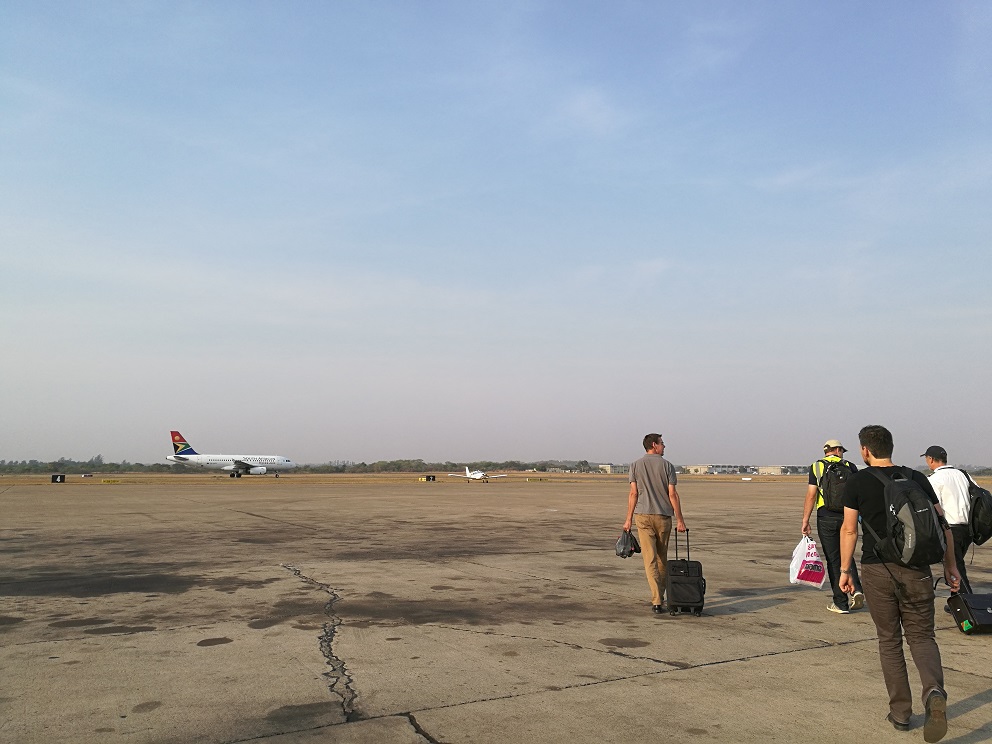 Diese Woche erlebten wir einen ganz besonderen Aus-Flug!! Letzten Sonntag erfuhren wir, dass unser Workpermitt (das ist die Arbeitsgenehmigung, die jeder Mitarbeiter auf Amano braucht) auf der Immigration in Lusaka für uns bereit liegt. Diese muss man persönlich abholen, weil man unterschreiben muss, dass wir sie auch empfangen haben. Da Chingola ca. 8 Fahrstunden von Lusaka entfernt liegt kamen wir in den Genuss zu fliegen. Zum ersten Mal in einem 6-Sitzer-Flugzeug zu sitzen mit unserem Schulchef und Piloten Michael Pflaum war schon ein besonderes Erlebnis.