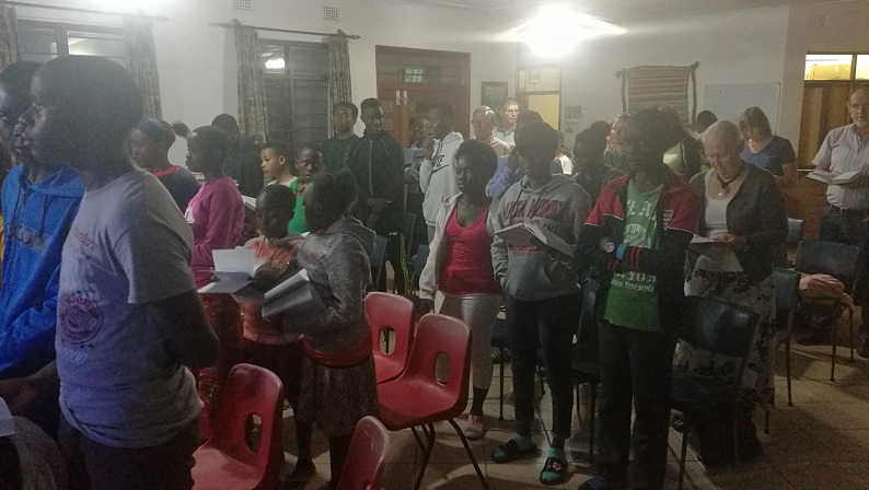 Ungefähr einmal im Monat findet in Amano ein Abendgottesdienst statt. Dieser ist vor allem für die Amano-Dorm Jugendlichen, jedoch kommt auch immer ein Kinderheim aus Chingola mit ihren Mitarbeitern dazu.