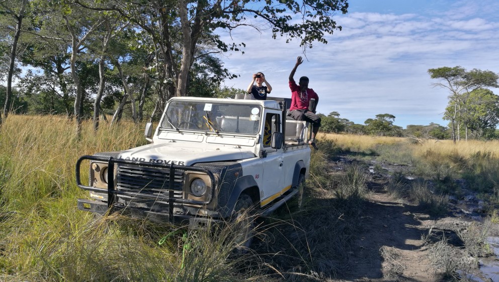 Im Termbreak war Katja mit drei Freunden für ein Wochenende Campen. Darum fuhr sie die meiste Zeit auch den großen Landcruiser, der sich übrigens fährt wie ein Traktor. Als sie an einem Nachmittag im Bush herumfuhren um Giraffen zu finden passierte etwas, das mit Matthias nie passiert wäre. Wir blieben stecken!